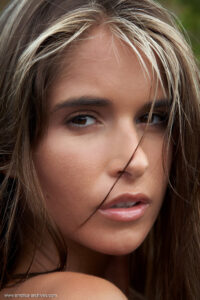 Sur un lit de rivière de sable, le physique long et mince de Nessa crée un contraste étonnant avec le cadre humide et humide. Son teint uniformément tanné et son teint lisse, son allure naturelle et ses charmes ultra féminins dépeignent parfaitement les nymphes de rivière enchanteresses dans les mythes. Sans un soupçon de maquillage, sa beauté naturelle se démarque alors que ses longs cheveux bruns encadrent son visage fascinant. Nous adorons totalement ses longues jambes bien ton qui sont largement ouvertes, présentant sa petite et serrée. Erro capture ses actifs à couper le souffle dans une combinaison de poses stylisées et de gros plans alléchants.