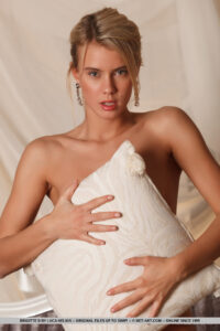 Né à l’exception d’une paire de boucles d’oreilles scintillantes, Brigitte posent avec un oreiller de lancement blanc devant Luca Helios & # 39; lentille. Venatione est sa deuxième série avec Metart et cette beauté blonde montre déjà beaucoup de potentiel. Avec son allure élégante et son look sensuel, faisant la moue des lèvres roses alors qu’elle affiche de son corps bronzé et de son cul rond sexy.