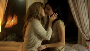 Après avoir passé un dîner romantique dans un restaurant local, Gabi et Whitney rentrent à la maison avec l’ambiance pour un peu d’amour & # 39;. Pour couronner leur rendez-vous, ils ont prévu de passer le reste de leur soirée à la maison de Whitney. La maison a une ambiance décontractée mais élégante, avec ses lampes indigènes avec une lueur ambre douce et des draperies de couleur crème. Une musique romantique douce joue en arrière-plan, ajoutant à l’ambiance romantique de l’endroit alors que Whitney déshabille soigneusement son partenaire, Gabi. En plus du lit blanc doux, ils se font à tour de rôle la chatte mutuellement avec un clitoris époustouflant et beaucoup d’action de la langue.